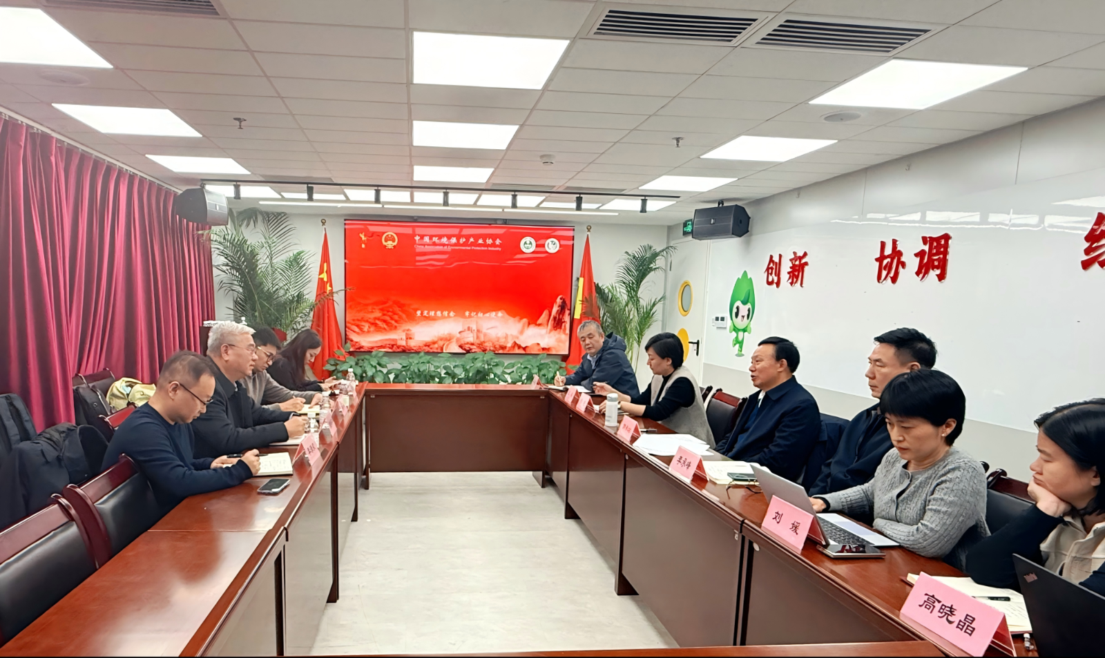 在中国环境保护产业协会,周碧河会长一行受到了郭承站会长的热烈欢迎。周会长介绍了浙江在构建现代环保产业体系、推进产业生态化与生态产业化等方面的实践探索,双方围绕标准落地实施、协会服务赋能、行业生态构建等领域展开了深入交流。郭会长高度肯定了浙江环保产业的发展成效,他指出,浙江作为“两山”理论发源地和美丽中国先行示范区,兼具经济大省、环保大省、产业大省多重优势,在环保产业发展方面具有基础和优势,应当以产业龙头之力引领全国环保产业一体化发展,中国环境保护产业协会将一如既往地支持浙江生态环保产业的高质量发展。
